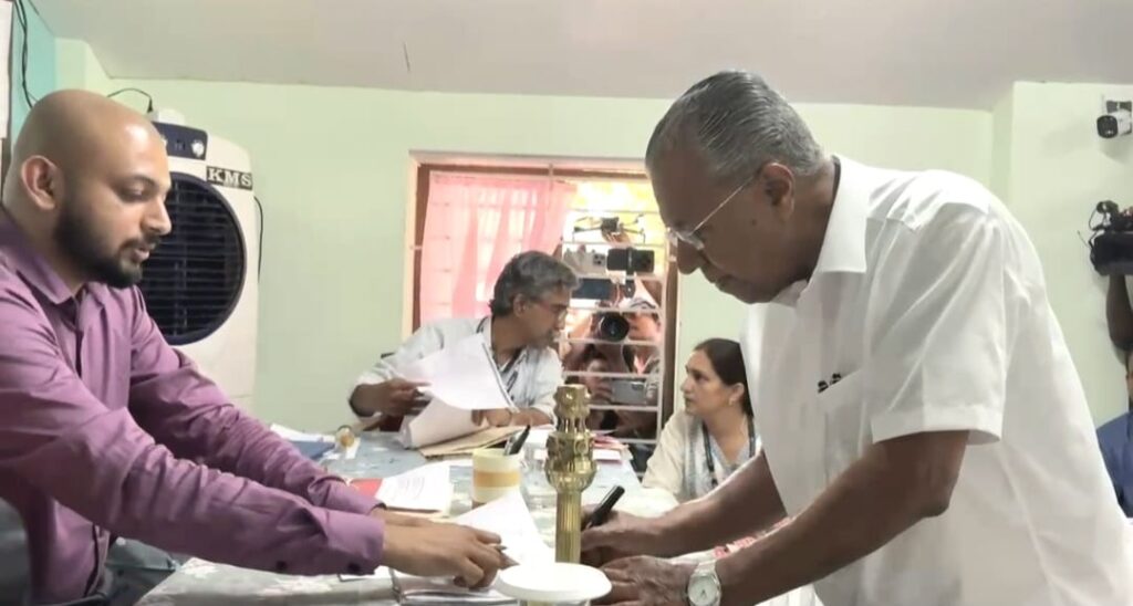 മുഖ്യമന്ത്രി പിണറായി വിജയൻ നാമനിർദേശപത്രിക സമർപ്പിച്ചു.