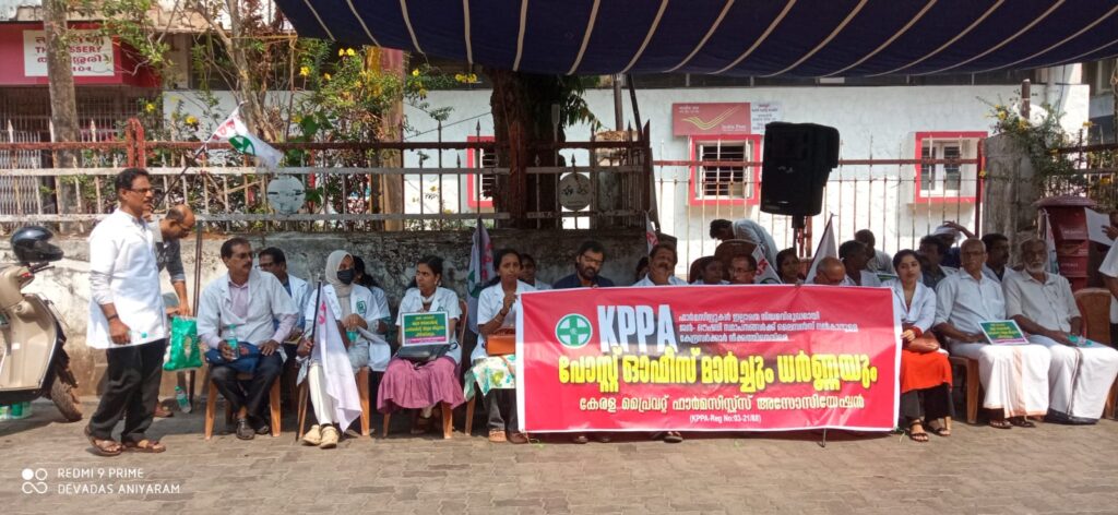 ഫാർമസിസ്റ്റുകൾ ഇല്ലാതെ ജൻ ഔഷധി മെഡിക്കൽ സ്ഥാപനങ്ങൾ പാടില്ല – ഫാർമസിസ്റ്റുകൾ പോസ്റ്റാഫിസ് മാർച്ച് നടത്തി.