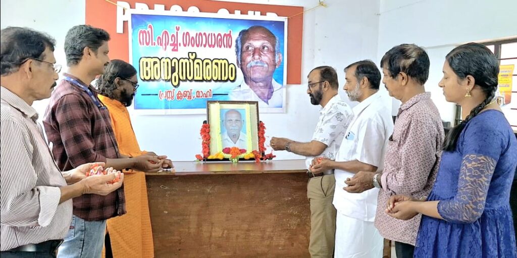 മയ്യഴിയുടെ ചരിത്രകാരനും, മാധ്യമ പ്രവർത്തകനുമായിരുന്ന സി.എച്ച്. ഗംഗാധരനെ പന്ത്രണ്ടാം ചരമവാർഷികദിനത്തിൽ മാഹി പ്രസ്സ് ക്ലബ്ബിൻ്റെ നേതൃത്വത്തിൽ സി.എച്ച്. ഗംഗാധരൻ സ്മാരക കേന്ദ്രത്തിൽ അനുസ്മരണവും പുഷ്പാർച്ചനയും നടത്തി.
